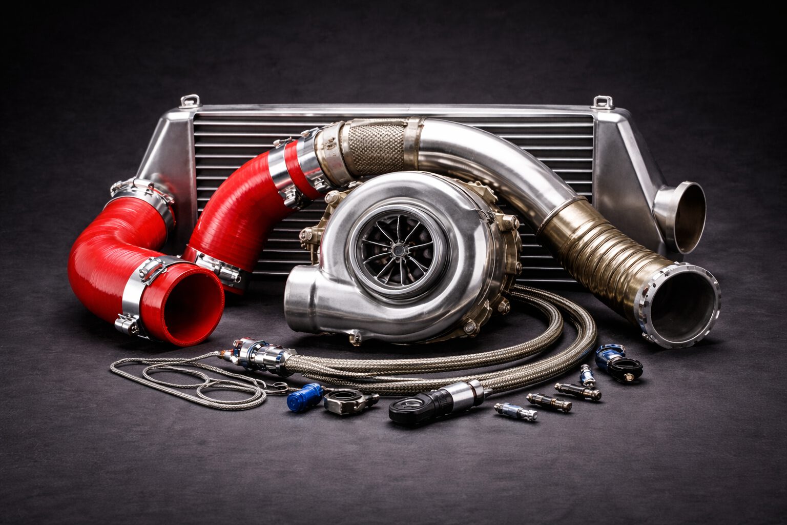 ブーストアップ対応の高性能ターボキット。SR20DET用ボルトオン設計で装着も簡単。